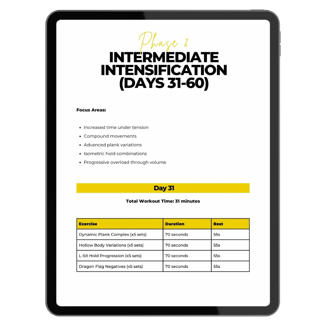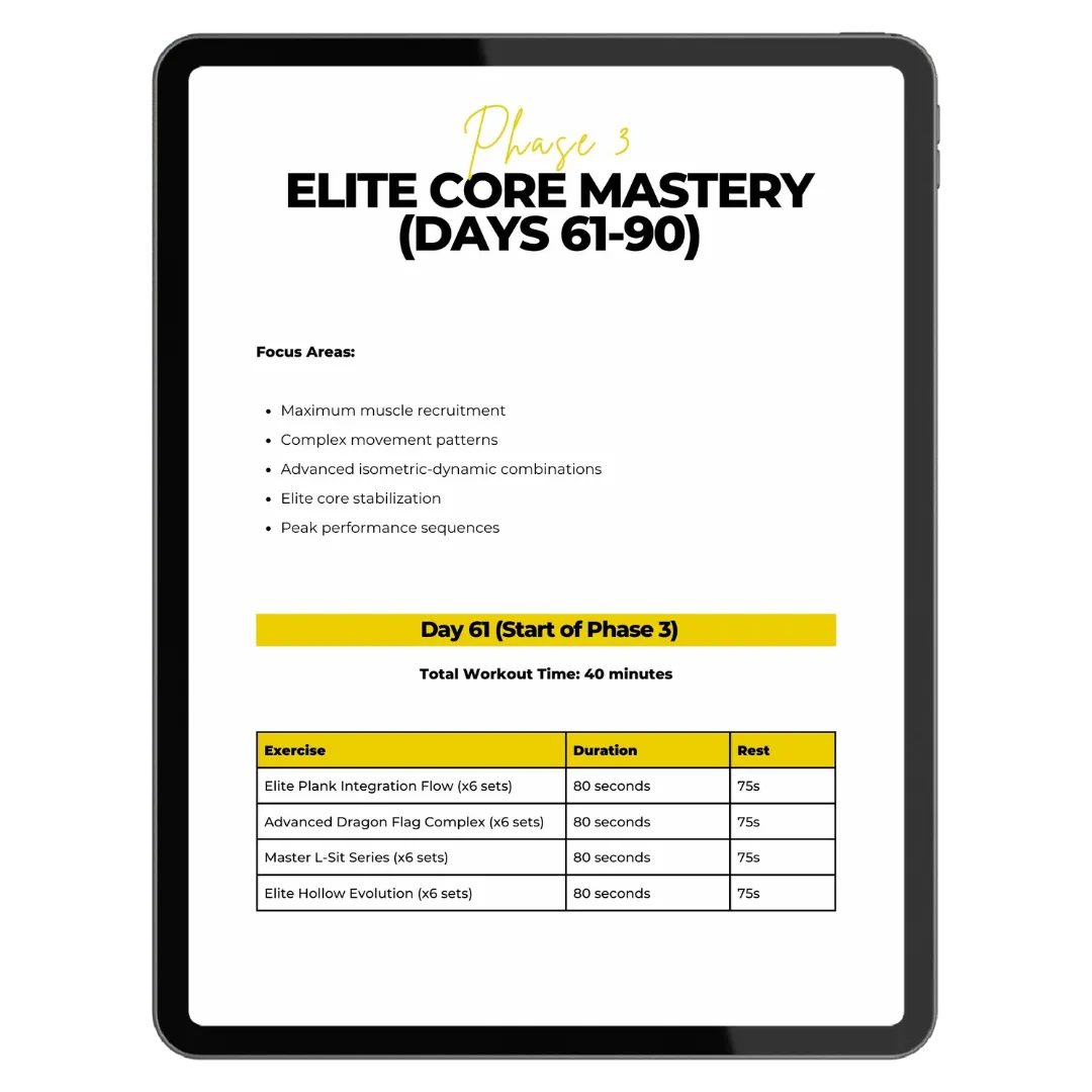 A comprehensive video library featuring 30+ core-focused exercises with step-by-step instructions. These advanced techniques are designed to maximize muscle engagement, based on research from leading performance labs.