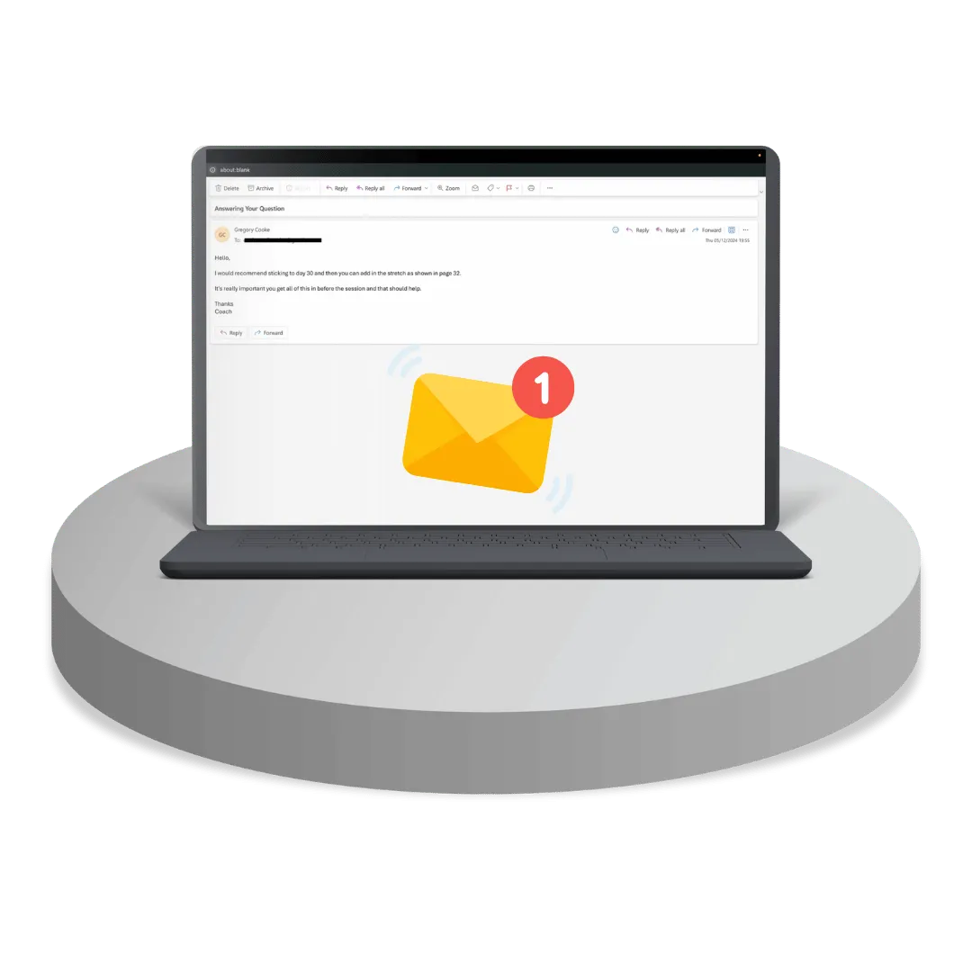 The most valuable bonus! You get 1:1 on email support with our expert coach direct from the Evolution Performance Lab. Fire away any questions you have, ask for tips and he'll guide whenever you need it.
